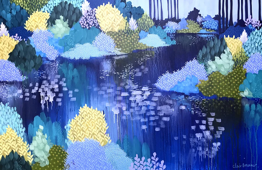 Now, of course I am not trying to make a political statement about pollution, I'm just hoping to give you something beautiful to look at and to help bring the outside in. I have thoroughly enjoyed the challenge of creating a series of works focusing on the beauty of the river. As well as working through the challenges of blending more traditional landscape compositions with my more stylized expressive style of painting. I hope you will join me on the 12th.