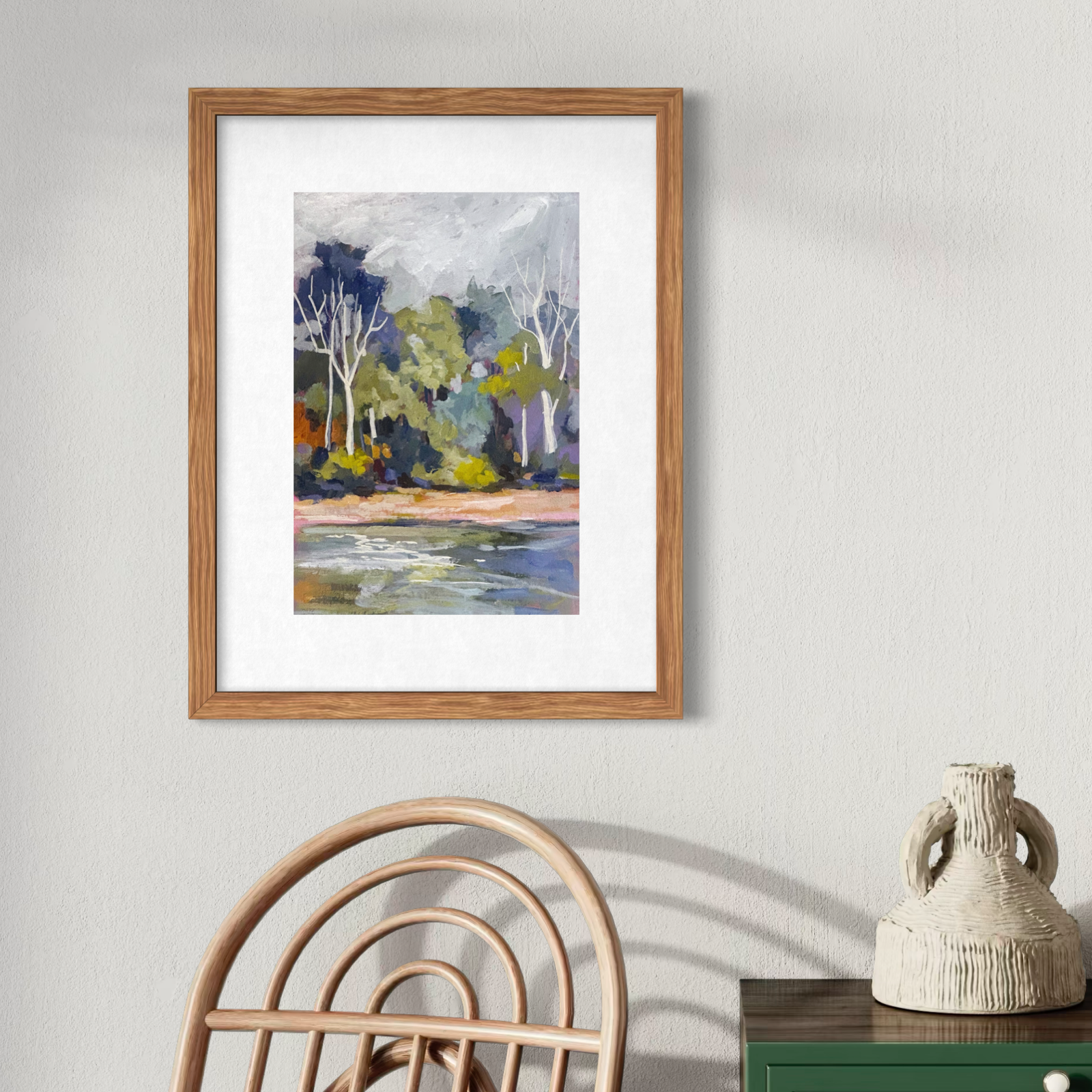 Rather than painting the landscape exactly as I see it, I respond to the feeling of being immersed within it — the hush of gum trees, the rhythm of branches, the warmth of earth and sky. Through bold colour, layered brushstrokes, and intuitive mark-making, I aim to capture the energy, movement, and emotional resonance of the bush.
